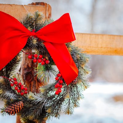 An old-fashioned holiday tradition is to hang an evergreen wreath on your door to welcome family and friends. Wreath making is quick and very inexpensive.